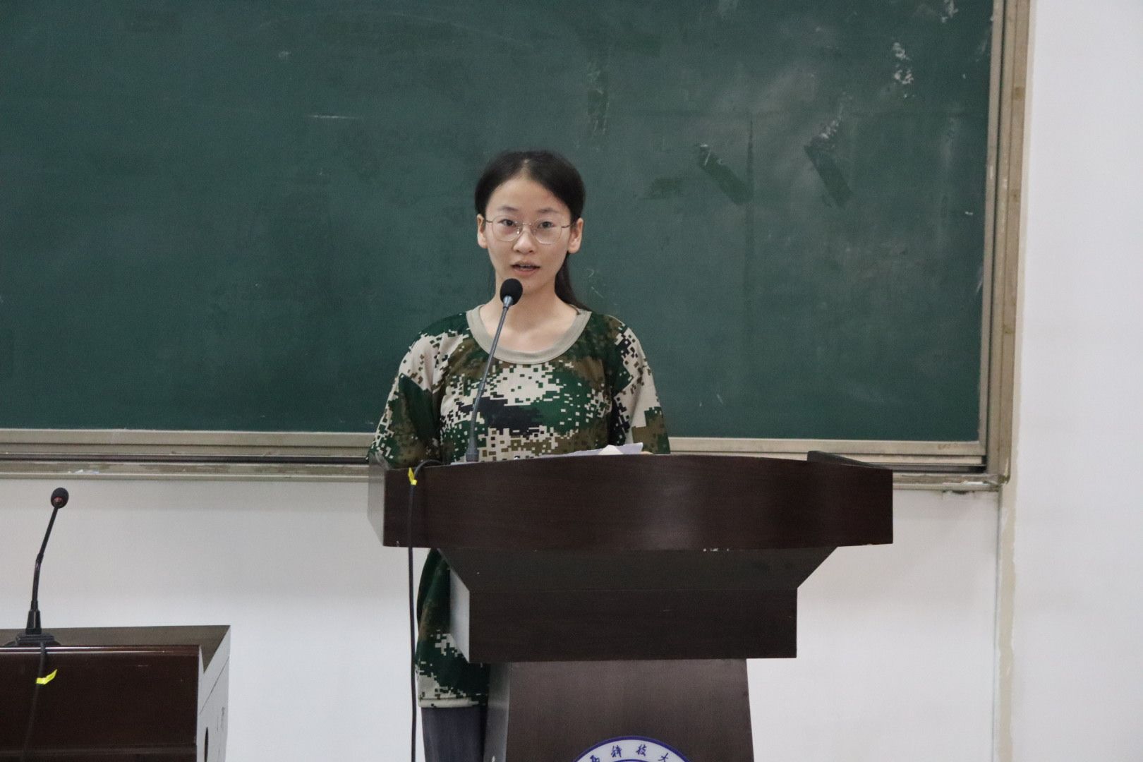 郭心怡同学(数学244班)作为新生代表分享了自己的心声,觉得迈入大学应该更合理的支配时间,不放纵自己,去自律的生活。要让爱国主义流淌在血液中,把青春梦融入中国梦,把青春奋斗融入到党和国家事业,以青春为橹,扬梦想之帆!