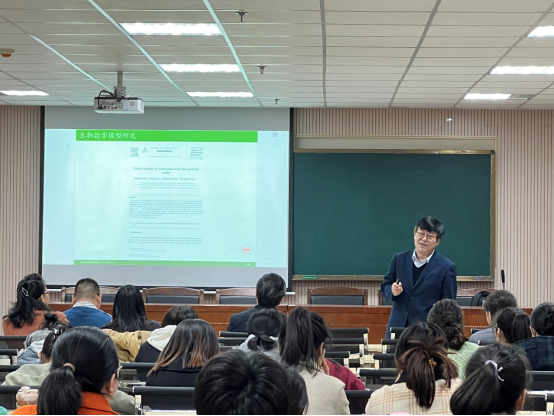 报告会上,首先王玮明教授介绍了在传染病建模和动力学研究的相关工作及研究成果,同时指出传染病模型的核心问题是寻找使得疾病灭绝和蔓延的阈值条件。其次,王玮明教授结合自己的研究经验和科研成果,介绍了生物数学模型和流感模型的建立思想,着重阐述了环境随机波动下人的行为变化对流感的影响和空间异质性对流感传播的影响。最后,通过举例说明了数学软件和数值计算的重要性。